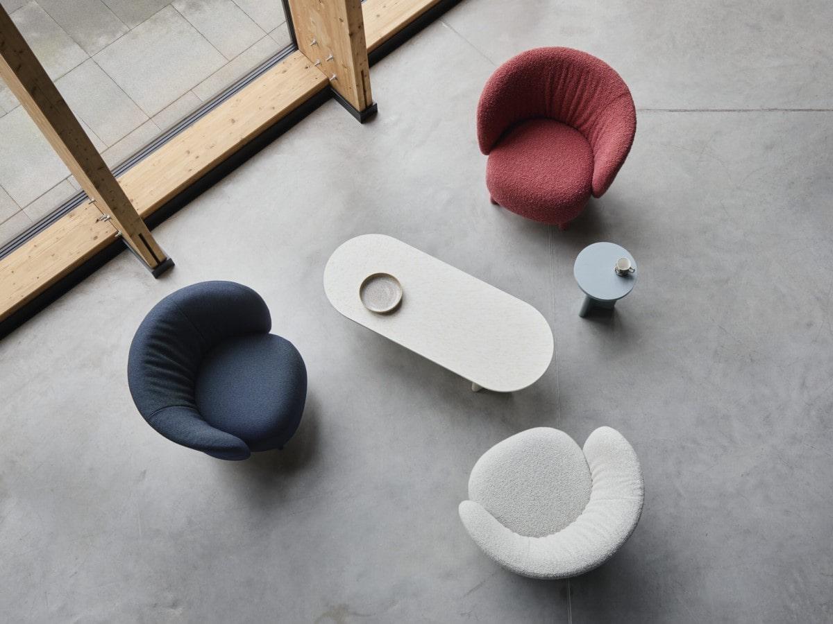 Družina foteljev Kori izstopa po globokem zarezu na zadnji strani naslonjala za hrbet. Zarez spominja na pas in razdeli naslonjalo na dva dela. Tako postane oblika bolj izrazita in privlačna za oko iz vseh kotov. Oblike vseh foteljev Kori imajo z mehke, tekoče linije. Zaokrožena, organsko valovita naslonjala spominjajo na orehove lupine. Videti so prijazni in udobni na prvi pogled, ki uporabnika mehko objamejo. Korijeve mehke, ukrivljene oblike izžarevajo brezčasno eleganco. Z ustreznim podnožjem lahko kolekcija pridobi bolj domač ali bolj pisarniški videz, ki naredi zbirko primerno za različne prostore in uporabo.