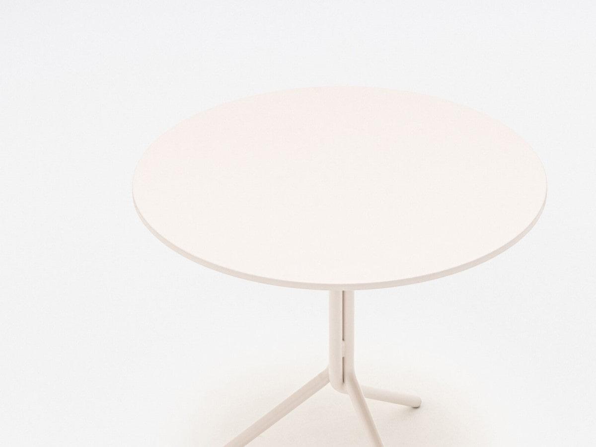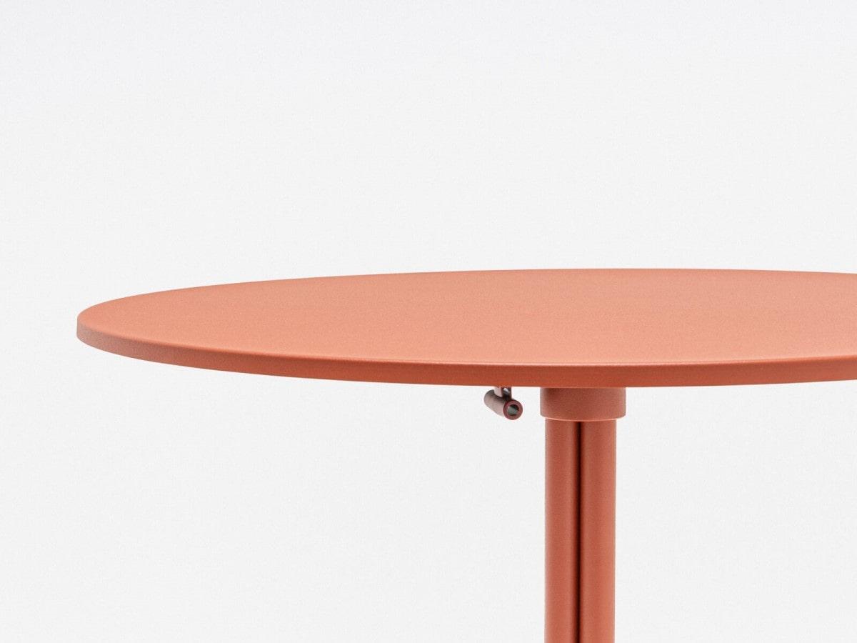 Kavna miza Luna višine h=73cm z jekleno mizno ploščo velikosti fi=70cm je vsestranska rešitev za notranje in zunanje prostore. Je odlična izbira za menze, restavracije, bare in kavarne ter njihove terase in vrtove. Tri-kraki okvir iz okroglih profilov daje mizi moderen značaj in zagotavlja stabilnost konstrukcije. Zahvaljujoč zložljivi mizni plošči je mogoče mize Luna zložiti vodoravno za enostavno shranjevanje in optimalno izrabo prostora.