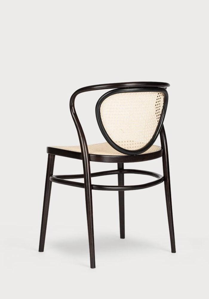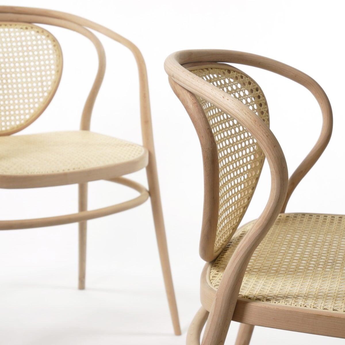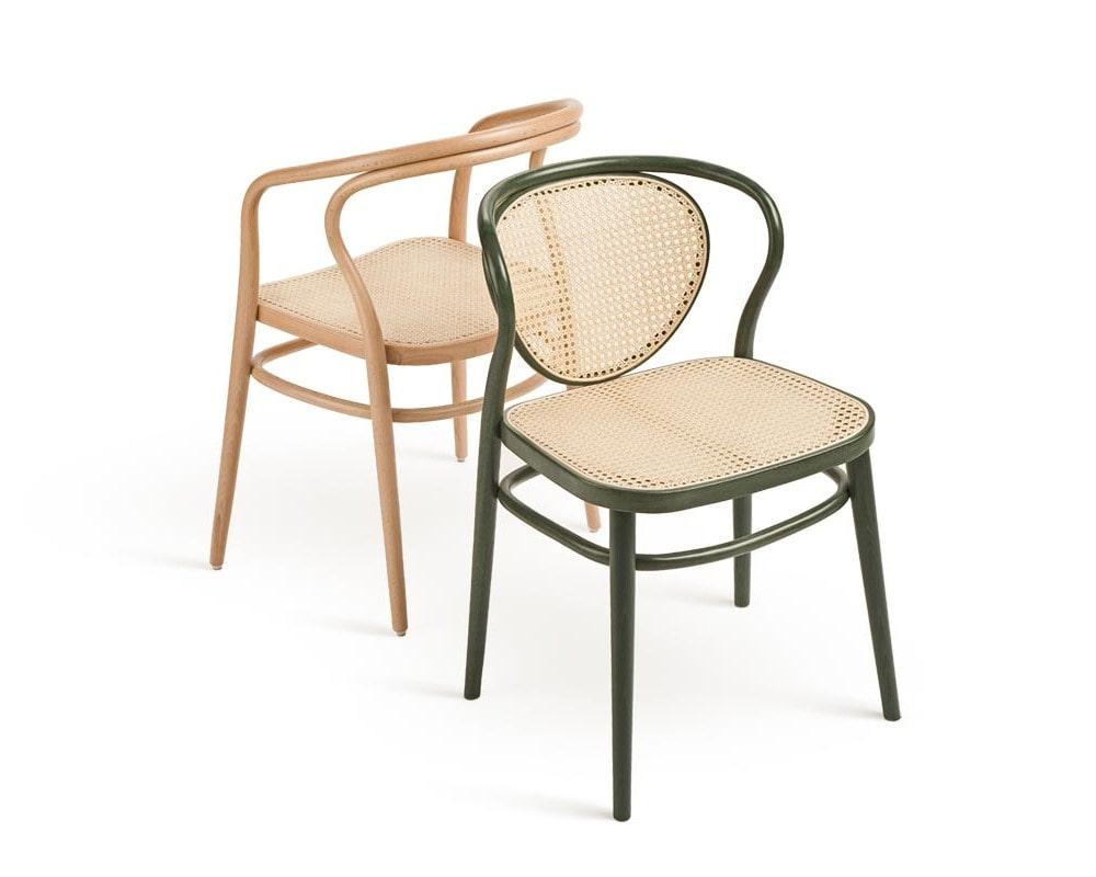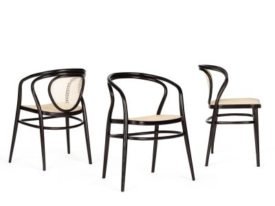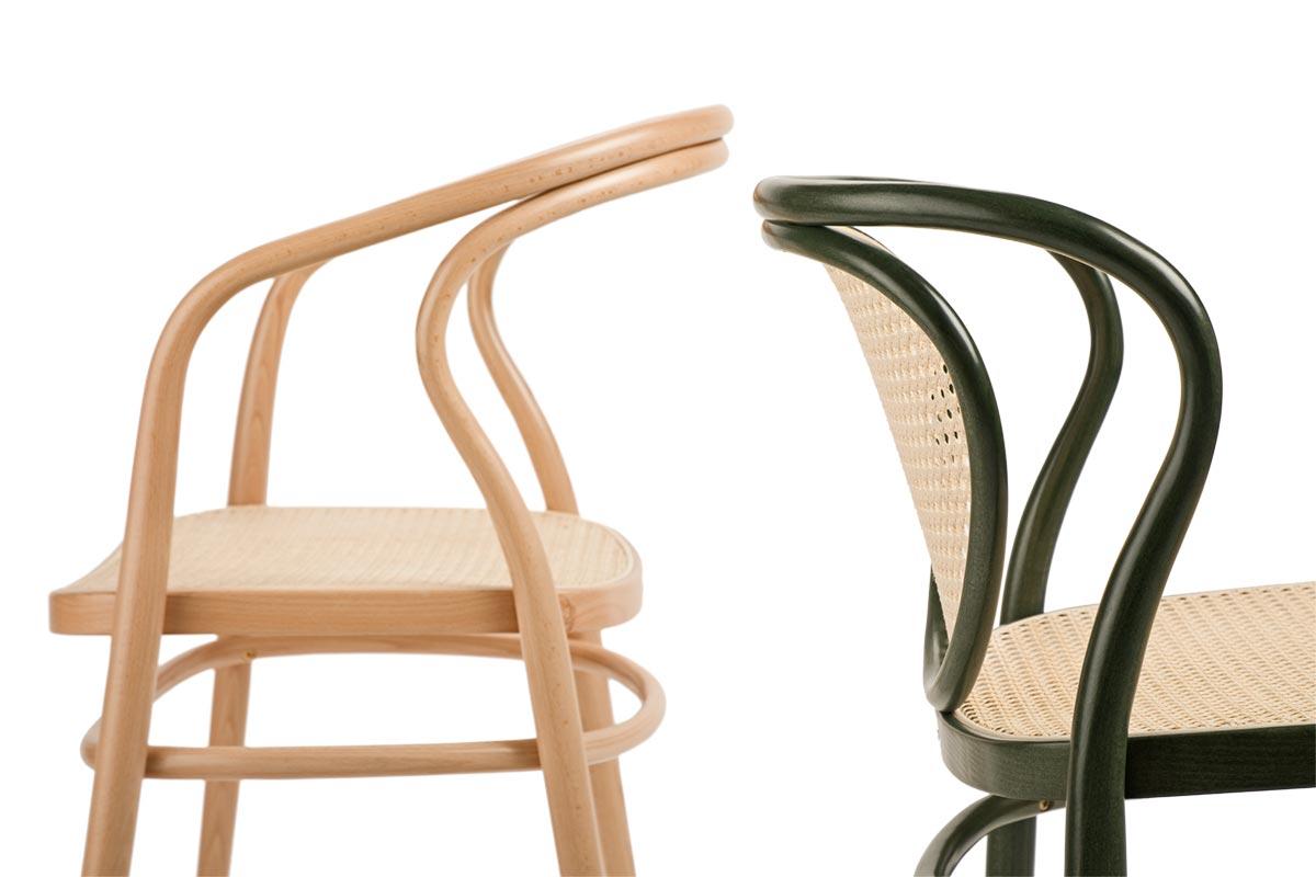 Posebnost stola Nodo so tanke zadnje noge, izdelane iz bukovih palic in upognjene v elegantno, čutno obliko. Preostala silhueta stola nekako dopolnjuje ta vtis, zahvaljujoč surovi geometrijski obliki sedeža in sprednjih nog.