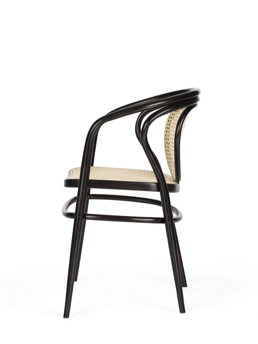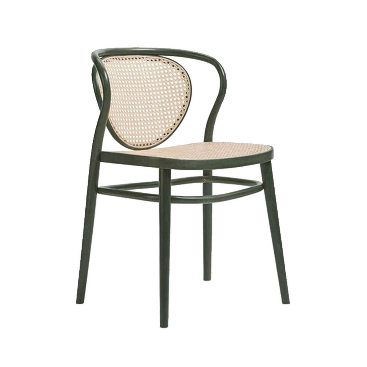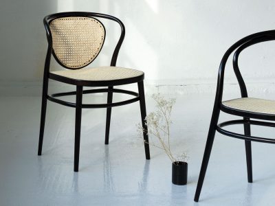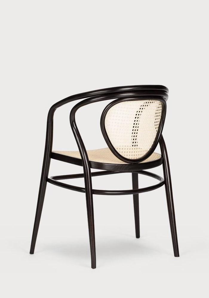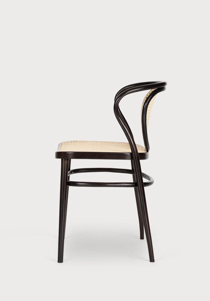 Posebnost stola Nodo so tanke zadnje noge, izdelane iz bukovih palic in upognjene v elegantno, čutno obliko. Preostala silhueta stola nekako dopolnjuje ta vtis, zahvaljujoč surovi geometrijski obliki sedeža in sprednjih nog.