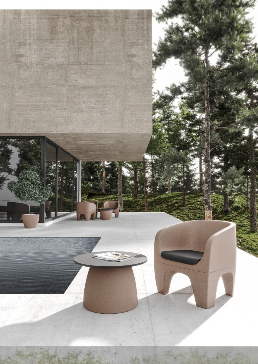 Fotelj Nuta Lounge s perforiranim tehnopolimernim ogrodjem in harmoničnimi oblikami dopolnjuje kolekcijo Nuta in zagotavlja še več udobja zaradi širokega sedeža. Idealen je kot lounge ali stol za čakanje, saj izstopa po svoji edinstveni estetiki in prefinjenem dizajnu. Plišasta, globoka blazina, ki je na voljo v različnih vrstah prevlek, zagotavlja neprimerljivo sprostitveno izkušnjo, tako v notranjih kot zunanjih prostorih. Drsniki iz visoko odporne termoplastične gume omogočajo premikanje izdelka brez sledi ali hrupa, za maksimalno funkcionalnost in praktičnost.