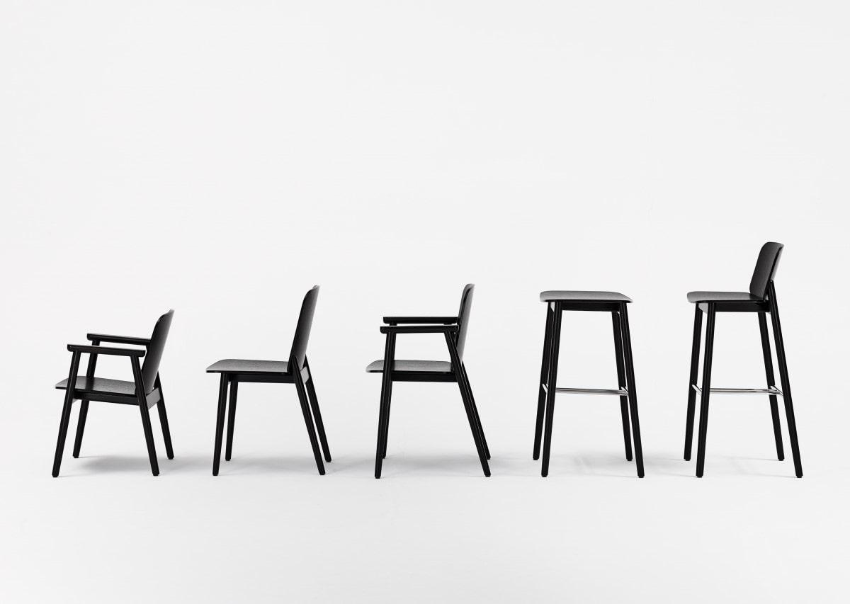 Moč dizajna stola Prop je kombinacija klasičnega sloga z minimalizmom. Okvir pohištva je izdelan iz struženih lesenih nog, sedež in naslonjalo pa sta iz vezane plošče. Oblazinjenje je dodaten element, ki stolom doda mehkobo in poudari njihov edinstven značaj. Kolekcija obsega štiri različice - fotelj, stol in dve različici barskega stola.